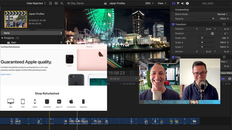 The M3 series of Apple Silicon chips was recently released by the tech giant, continuing the successful drive of the Mac resurgence post-Intel. However, now with the transition complete, many M1 and M2 machines are now appearing at better price points on Apple’s Certified Refurbished store and third party retailers. Given even the original M1 series of Apple Silicon is still extremely powerful, are refurbished models just straight up better value for Apple users? Steve and Ben discuss these issues, as well as shooting ProRes video on the iPhone 14 Pro Max and managing the large video files through the lightning port.